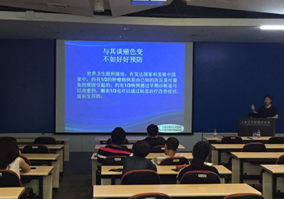 講座中,王玫玫首先通過數(shù)據(jù)分析了我國城市居民各類疾病的危害,并結(jié)合幾個實際案例,指出了我國腫瘤的發(fā)病呈現(xiàn)出“年輕化”態(tài)勢。接著,王玫玫重點闡述了吸煙、飲食不健康、不注重體檢等因素導致的各類腫瘤疾病發(fā)生的情況,并建議大家盡量戒除不良生活習慣,對各類潛在癥狀保持高度關(guān)注,必要時及時到醫(yī)療機構(gòu)進行篩查。最后,王玫玫祝愿大家保持良好的體魄,健康快樂的生活。