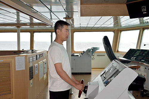 水手姜春明正在操舵