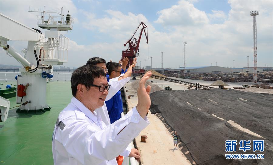 科考隊員向送行的親屬和同事?lián)]手道別