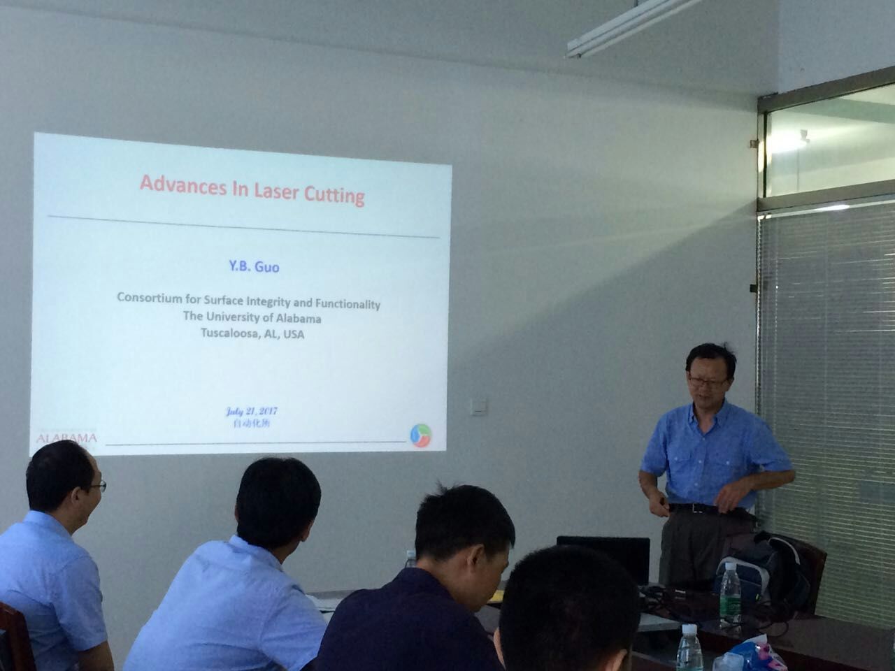 7月21日,應中國科學院沈陽自動化研究所激光沖擊強化實驗室的邀請,美國阿拉巴馬大學(University of Alabama)教授郭躍彬訪問研究所,并作了題為Advances In Laser Cutting的學術報告。沈陽自動化所相關科研人員、研究生參加了報告會。