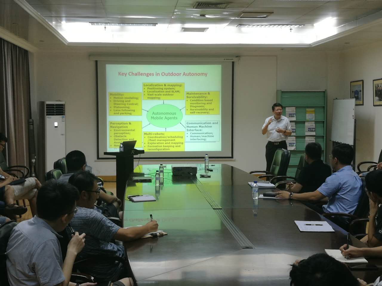 7月24日,新加坡南洋理工大學(xué)王鄲維教授訪問中國科學(xué)院沈陽自動化研究所,并作了題為Multi-Robots in 3D Unstructured Environments的學(xué)術(shù)報告。沈陽自動化所黨委書記兼副所長桑子剛與王鄲維親切會談。人事教育處處長周船和相關(guān)科研人員、研究生參加了學(xué)術(shù)報告會。