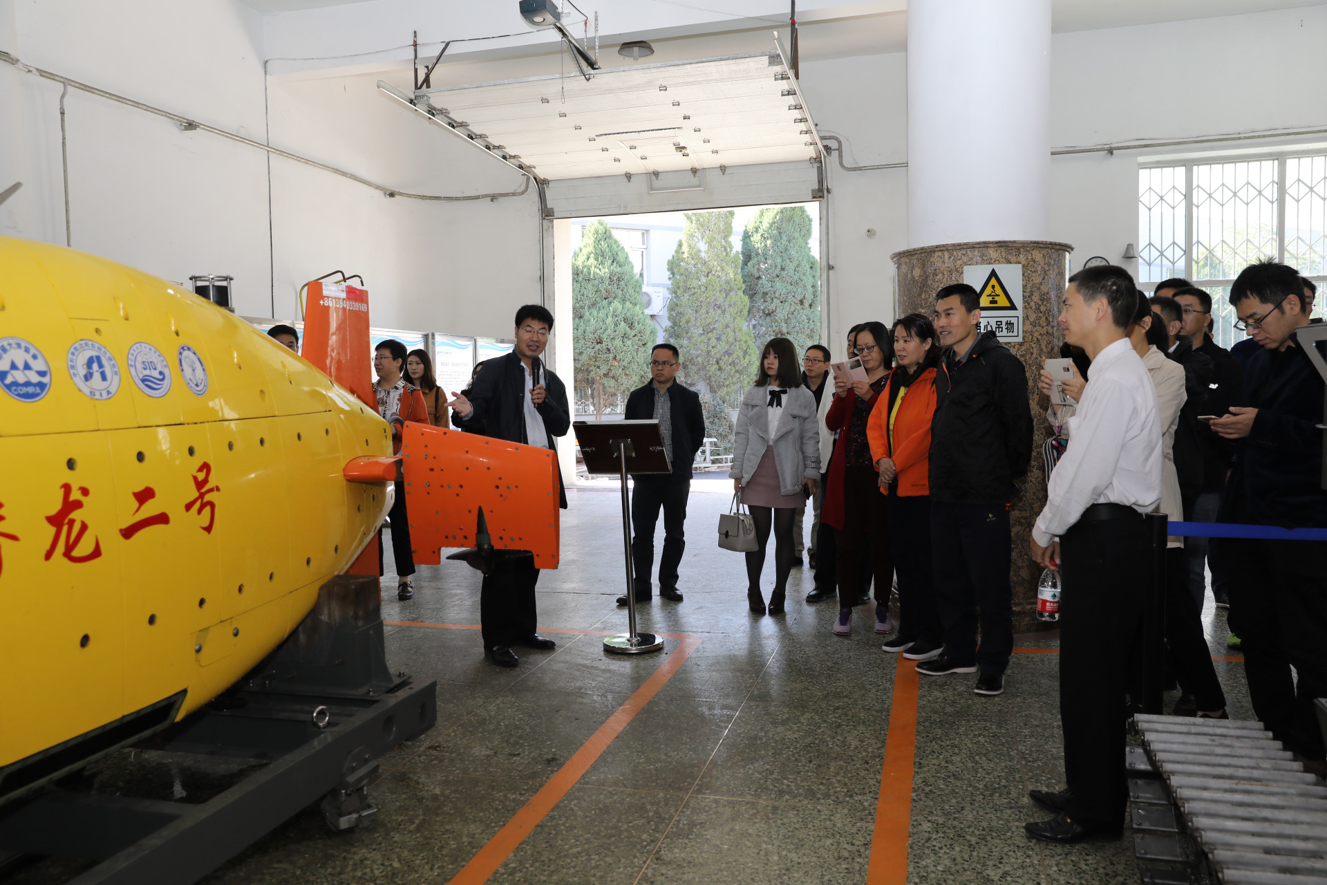 中國(guó)海洋報(bào)社一行還參觀了沈陽(yáng)自動(dòng)化所科技成果展館和水下條件實(shí)驗(yàn)室,聽(tīng)取了相關(guān)人員對(duì)研究所科研成果實(shí)物、展板的介紹。(綜合辦公室)