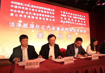 隨后,劉中民代表大連化物所與唐山市政府簽署潔凈能源化工產(chǎn)業(yè)示范基地戰(zhàn)略合作框架協(xié)議。蔡睿代表大連化物所與中國科學(xué)院控股有限公司、中科通用(天津)股權(quán)投資管理有限公司、河鋼集團(tuán)唐鋼公司、唐山威格化學(xué)工業(yè)有限公司、云能投(上海)能源開發(fā)有限公司、中合華浦(北京)基金管理有限公司簽署在河北省唐山海港開發(fā)區(qū)發(fā)起設(shè)立“中國科學(xué)院潔凈能源化工產(chǎn)業(yè)基金”的框架合作協(xié)議。