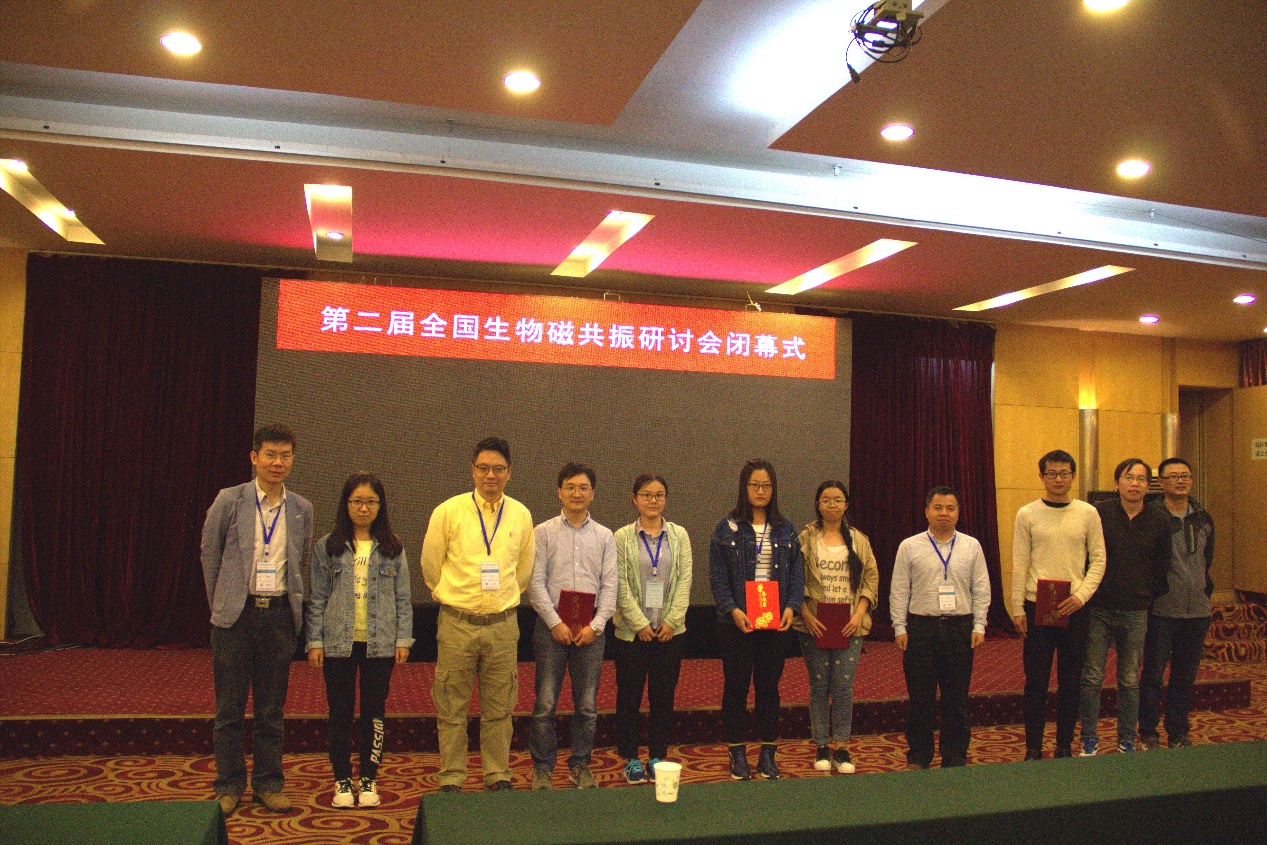 會(huì)議由生物磁共振專業(yè)委員會(huì)理事長(zhǎng)唐淳研究員主持,呂雪峰致辭并介紹了研究所的整體情況,施蘊(yùn)渝院士代表第一屆生物磁共振專業(yè)委員會(huì)致辭并介紹了專業(yè)委員會(huì)的換屆情況。在為期兩天的會(huì)議中,與會(huì)代表圍繞生物核磁共振方法的發(fā)展及其在生物大分子結(jié)構(gòu)、動(dòng)態(tài)、相互作用、藥物篩選、天然產(chǎn)物鑒定及磁共振成像中的應(yīng)用進(jìn)行了討論和交流。大會(huì)邀請(qǐng)了中科院武漢物理與數(shù)學(xué)研究所唐淳研究員、中國(guó)科學(xué)技術(shù)大學(xué)龍冬教授、北京大學(xué)金長(zhǎng)文教授和北京大學(xué)夏斌教授做大會(huì)特邀報(bào)告,另有34位來(lái)自結(jié)構(gòu)生物學(xué)、磁共振方法學(xué)、代謝組學(xué)、藥物篩選等研究領(lǐng)域的專家學(xué)者進(jìn)行了學(xué)術(shù)報(bào)告,對(duì)磁共振技術(shù)的發(fā)展及應(yīng)用進(jìn)行了深入的交流與探討。會(huì)議期間還對(duì)參展的墻報(bào)進(jìn)行了評(píng)比,來(lái)自中國(guó)科技大學(xué)、北京大學(xué)、中科院武漢物理與數(shù)學(xué)研究所和我所的6位同學(xué)獲得優(yōu)秀墻報(bào)獎(jiǎng)。在閉幕式上,中國(guó)生物物理學(xué)會(huì)生物磁共振專業(yè)委員會(huì)宣布第三屆全國(guó)生物磁共振研討會(huì)將于2019年在武漢舉辦,由中國(guó)科學(xué)院武漢物理與數(shù)學(xué)研究所承辦。