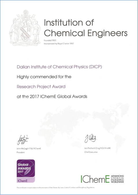 總部設(shè)于英國的IChemE成立于1922年,該協(xié)會是國際著名化學(xué)工程專業(yè)組織,提供針對化工專業(yè)的權(quán)威認(rèn)證,現(xiàn)有會員4萬多人,分布在世界120個國家。IChemE Global Awards涵蓋了化工、生物、能源、環(huán)境及可持續(xù)發(fā)展等領(lǐng)域,本年度共設(shè)能源獎(Energy Award)、油氣獎(Oil and Gas Award)、研發(fā)項(xiàng)目獎(Research Project Award)等15類。根據(jù)評選規(guī)則,每類評出獲獎項(xiàng)目及高推薦項(xiàng)目各一個。