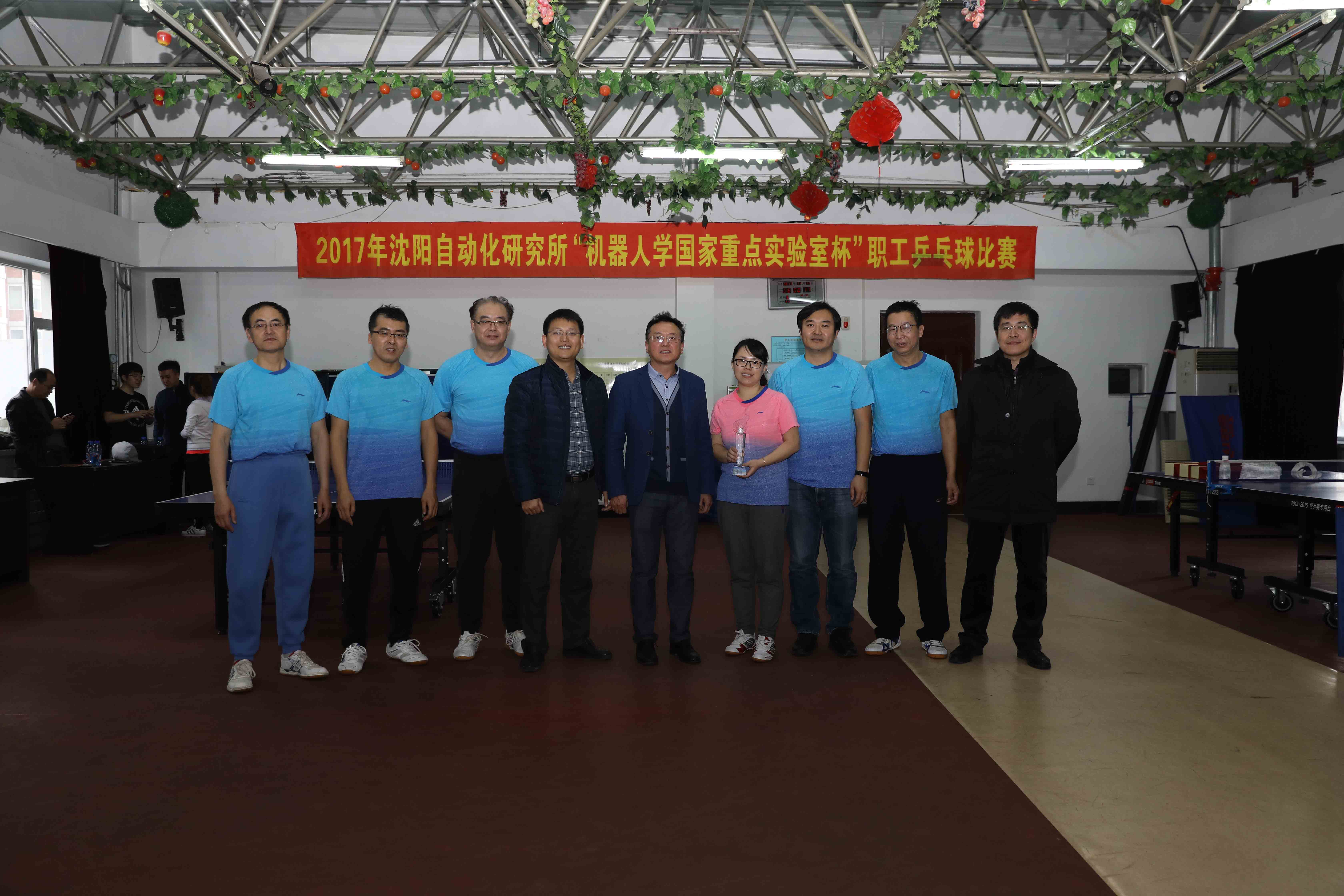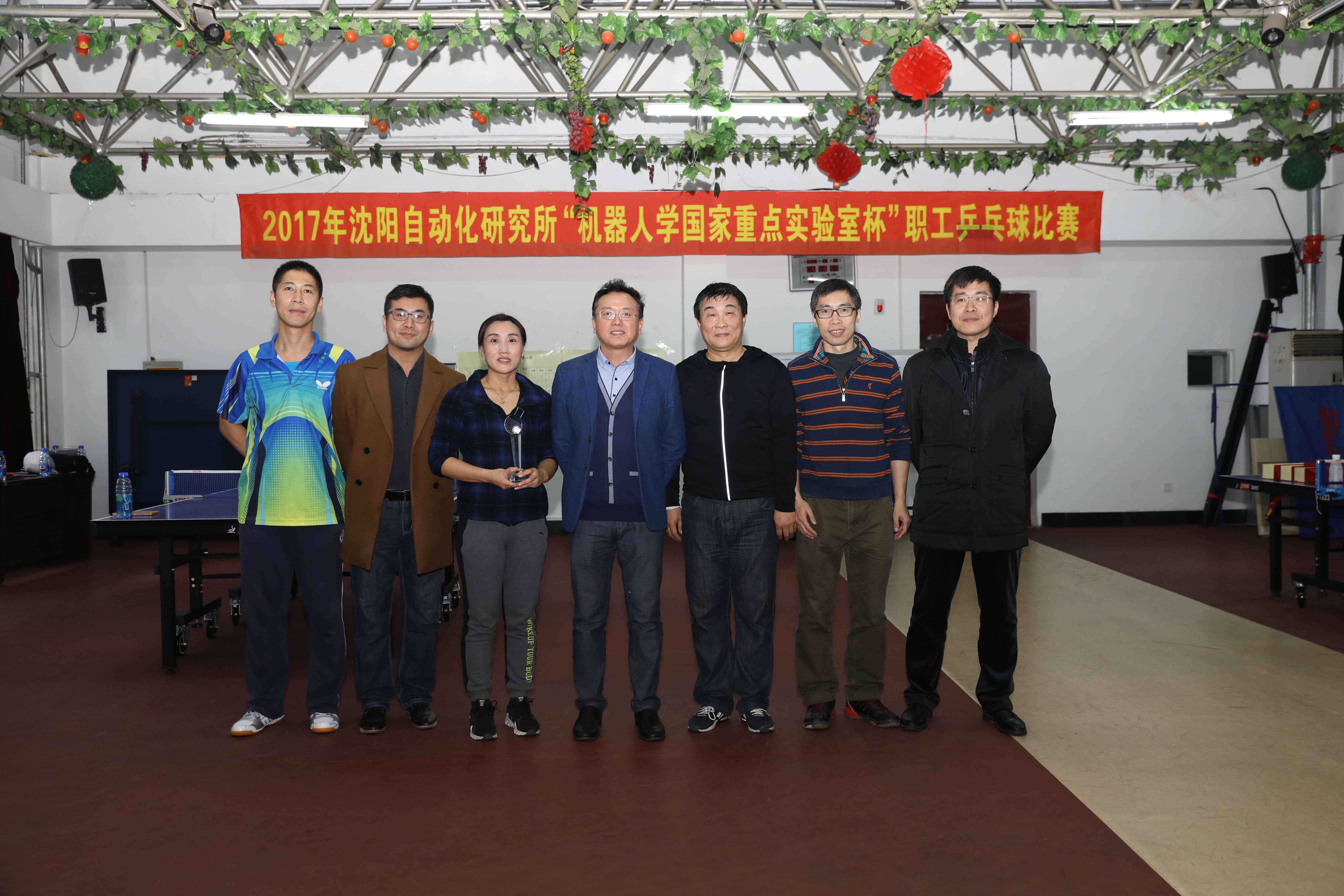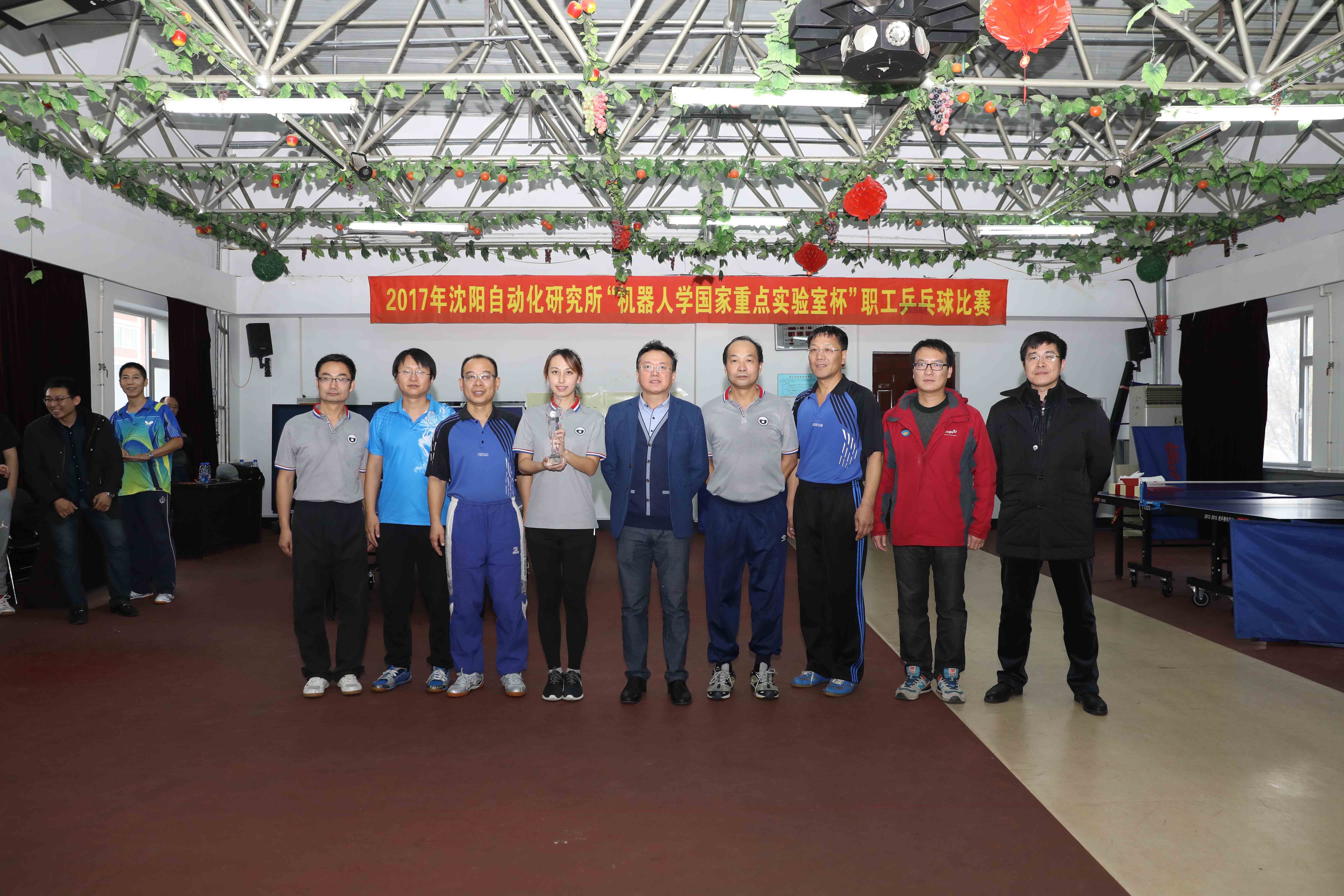 比賽結束后,工會主席王明輝宣布了2017年沈陽自動化所職工乒乓球賽成績。黨委書記兼副所長桑子剛向團體比賽冠亞季軍代表隊頒發(fā)了獎杯,并合影留念。(工會)