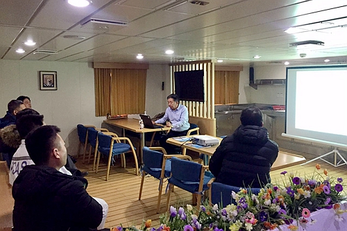 隋延航船長(zhǎng)做船員法規(guī)與體系相關(guān)培訓(xùn)
