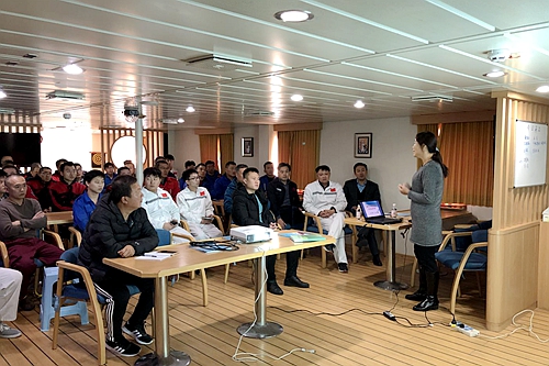 有過(guò)出??疾旖?jīng)歷的人都能體會(huì)到,長(zhǎng)期遠(yuǎn)航對(duì)船上工作人員的心理狀態(tài)會(huì)產(chǎn)生明顯影響,使其處于亞健康狀態(tài)。如何克服不良情緒的困擾,培養(yǎng)樂(lè)觀、豁達(dá)開(kāi)朗的心態(tài),高質(zhì)量地完成海上科考任務(wù),顯得尤為重要。青島遠(yuǎn)洋船員職業(yè)學(xué)院副教授宮捷從實(shí)例和親身體會(huì)娓娓道來(lái),做了題為《船員心理壓力與情緒管理》的心理健康講座。宮捷副教授首先介紹了心理壓力的概念及來(lái)源,并以自身多年的教育經(jīng)驗(yàn)和親身體驗(yàn)分析了船員的心理壓力,進(jìn)而疏導(dǎo)船員心理訴求,引導(dǎo)出海人員正確認(rèn)識(shí)壓力并提供積極的認(rèn)知策略來(lái)應(yīng)對(duì)壓力,以達(dá)到減輕壓力、做好情緒管理的目的。