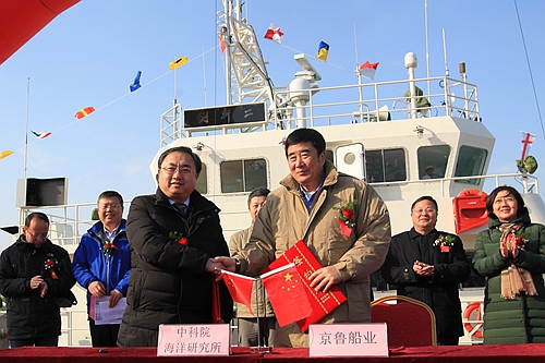 11月30日,中國科學(xué)院海洋研究所300噸級河口淺水型科學(xué)考察船“創(chuàng)新二”號在山東蓬萊正式交付使用,將重點支撐長江口及其南北鄰近海域的生態(tài)環(huán)境觀測和現(xiàn)場模擬研究。中國科學(xué)院、煙臺市、蓬萊市,以及項目法人單位、承建單位和兄弟院所等單位和部門的領(lǐng)導(dǎo)和嘉賓出席交接儀式。
