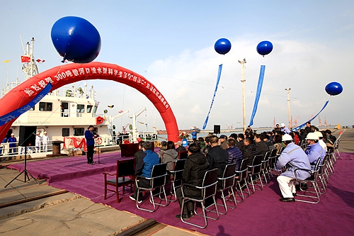 中科院條件保障與財務局高級工程師張紅松、蓬萊中柏京魯船業(yè)有限公司董事長王轟、中國科學院海洋研究所所長王凡分別致辭,中科院海洋所黨委書記王輝主持儀式。