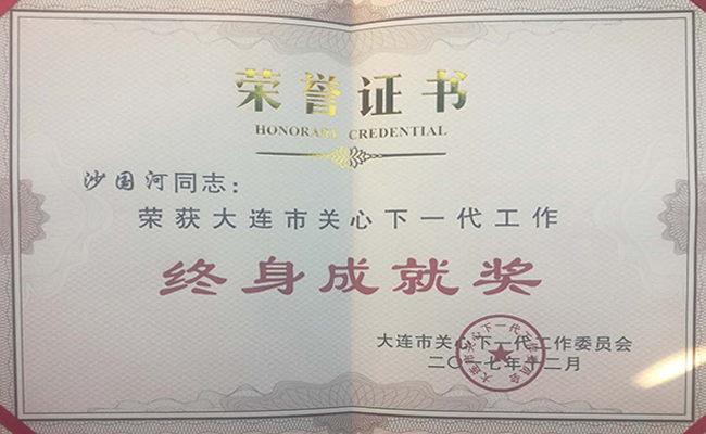 12月12日,紀念大連市關工委成立30周年暨全市關心下一代工作表彰大會在棒棰島賓館召開。全國人大常委會原副委員長、中國關工委主任顧秀蓮,大連市委副書記王啟堯等領導出席會議。會上表彰了大連市關心下一代工作終身成就獎,中國科學院大連化學物理研究所院士沙國河等八人獲此殊榮。