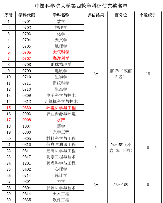近日,教育部學(xué)位與研究生教育發(fā)展中心公布了全國第四輪學(xué)科評(píng)估結(jié)果。中國科學(xué)院大學(xué)共有48個(gè)一級(jí)學(xué)科參評(píng),其中30個(gè)學(xué)科被評(píng)為優(yōu)秀(A類),18個(gè)學(xué)科被評(píng)為A+,6個(gè)被評(píng)為A,6個(gè)被評(píng)為A-,總成績僅次于北大、清華,名列全國第三。