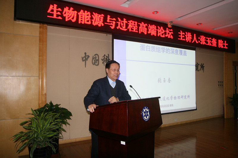 2018年1月2日新一年第一個(gè)工作日,研究所邀請張玉奎院士出席青島能源所主辦的“生物能源與過程高端論壇”,做了題為“蛋白質(zhì)組學(xué)的深度覆蓋”的學(xué)術(shù)報(bào)告。報(bào)告會由研究所黨委書記、副所長彭輝主持。黨委副書記、紀(jì)委書記馮埃生、副所長呂雪峰,相關(guān)負(fù)責(zé)人及研究生近百人參加學(xué)術(shù)報(bào)告。