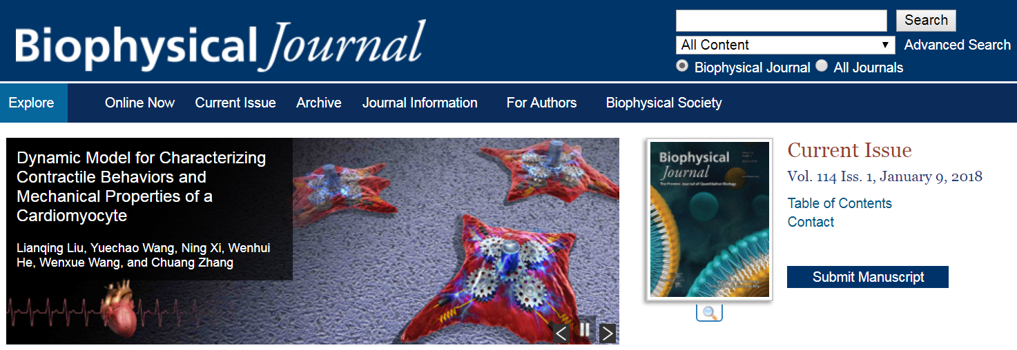 近日,國際著名學(xué)術(shù)雜志Biophysical Journal(中科院二區(qū)Top類期刊)以亮點論文的形式發(fā)表了中國科學(xué)院沈陽自動化研究所微納米課題組在類生命機器人領(lǐng)域取得的最新成果(Dynamic Model for Characterizing Contractile Behaviors and Mechanical Properties of a Cardiomyocyte, Biophysical Journal, Vol.114(1), pp.188-200, 2018. DOI: http://dx.doi.org/10.1016/j.bpj.2017.11.002, http://www.cell.com/biophysj/home)。