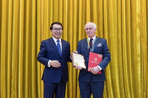 白春禮院長(zhǎng)為彼得?布魯爾教授頒發(fā)國(guó)際科技合作獎(jiǎng)