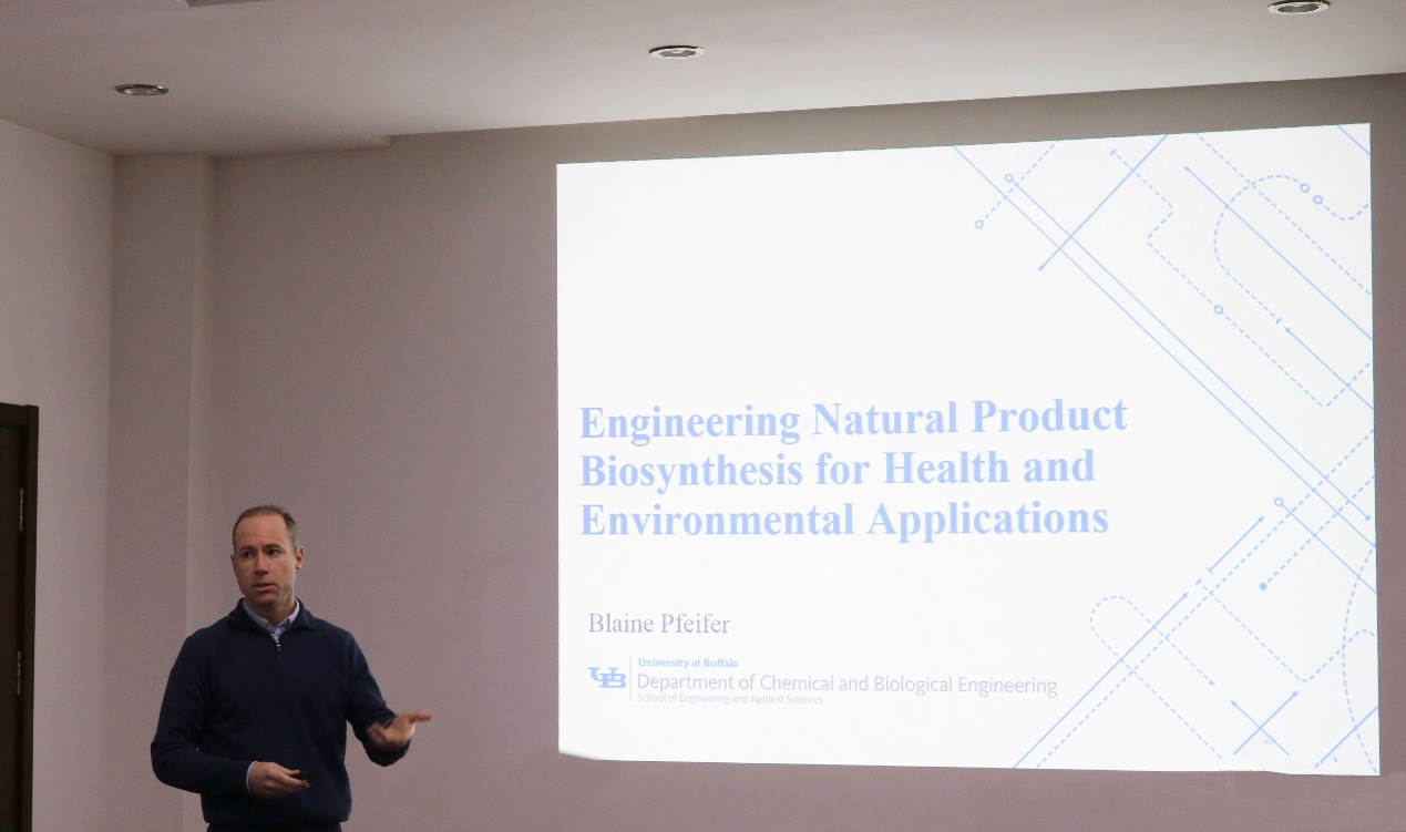 1月24日,紐約州立大學(xué)布法羅分校Blaine Pfeifer教授受邀參加青島能源所主辦的合成生物學(xué)系列學(xué)術(shù)講座。Blaine Pfeifer任紐約州立大學(xué)布法羅分?;瘜W(xué)與生物工程學(xué)院教授,研究方向主要為異源天然產(chǎn)物生物合成以及疫苗研制等,在生物合成及合成生物學(xué)領(lǐng)域的研究具有很深的造詣。
