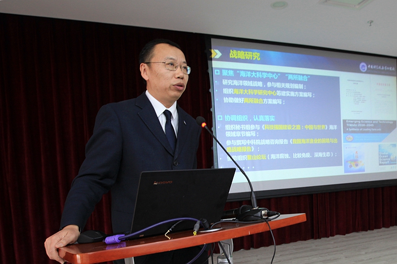 實(shí)驗(yàn)海洋生物學(xué)、海洋生態(tài)與環(huán)境科學(xué)、海洋環(huán)流與波動(dòng)、海洋地質(zhì)與環(huán)境、海洋環(huán)境腐蝕與生物污損5個(gè)中科院重點(diǎn)實(shí)驗(yàn)室以及海洋生物分類(lèi)與系統(tǒng)演化實(shí)驗(yàn)室、深海研究中心負(fù)責(zé)人分別匯報(bào)了研究室2017年的工作進(jìn)展,深入分析了困難和不足,提出了2018年的研究室發(fā)展思路。