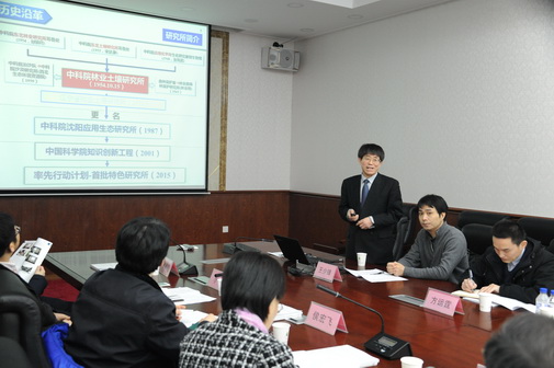 首先,金昌杰對王穎、蘇剛等領(lǐng)導(dǎo)到訪表示熱烈的歡迎與衷心的感謝。隨后,朱教君對研究所基本情況、“一三五”規(guī)劃的實施、特色研究所建設(shè)、研究生教育等方面進(jìn)行了介紹,尤其是就“三大突破”取得進(jìn)展、研究生教育的特色做法和學(xué)位點評估及成績等方面做了重點闡述。他還就申請國家重點實驗室、參與國科大現(xiàn)代農(nóng)業(yè)科學(xué)學(xué)院建設(shè)、成立東北亞資源生態(tài)環(huán)境學(xué)院等方面提出了設(shè)想和建議。