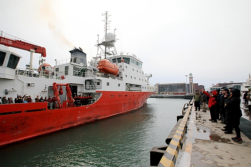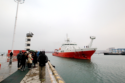 2月7日,“科學”號科考船圓滿完成“西太主流系潛標觀測網(wǎng)維護及升級”考察航次,順利返回青島母港。所長王凡、黨委書記王輝、胡敦欣院士以及科考船運管中心負責人、相關部門同事到碼頭迎接。