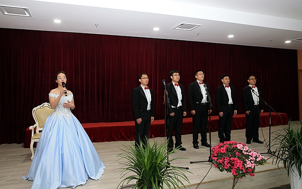 一首《不忘初心》拉開了聯(lián)歡會的帷幕,舞蹈《茉莉花》讓大家感受到了清新溫柔之美,《聽?!贰ⅰ稌r間都去哪兒》、《春暖花開》等歌曲讓現(xiàn)場觀眾沉浸在優(yōu)美的旋律中,精彩的小合唱《游擊隊之歌》、《貝加爾湖畔》、《怒放的海洋》等贏得陣陣掌聲,現(xiàn)代舞《鵝mazing》、三句半《趣話海洋所》將現(xiàn)場氣氛推上高潮。煙臺海岸帶所的同事也帶來了精彩的相聲《我要搞科研》及男生小合唱《喀秋莎》、《步步高》。近兩個小時的聯(lián)歡會在合唱曲目《走向復(fù)興》中圓滿落下帷幕。