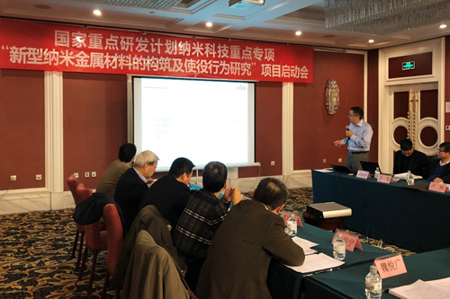 金屬所張哲峰副所長代表項(xiàng)目牽頭單位致歡迎辭。他首先感謝了科技部領(lǐng)導(dǎo)的信任和各位專家的大力支持,簡要回顧了項(xiàng)目團(tuán)隊(duì)在納米金屬材料領(lǐng)域的開創(chuàng)性貢獻(xiàn),肯定了團(tuán)隊(duì)在該領(lǐng)域的國際領(lǐng)先地位,并表示金屬所將全力推動(dòng)項(xiàng)目的組織實(shí)施,確保高質(zhì)量完成各項(xiàng)研究任務(wù)。力學(xué)所秦偉所長指出,對(duì)納米金屬材料更加深入、細(xì)致的研究是納米科技領(lǐng)域值得關(guān)注和推動(dòng)的大事件,并表示力學(xué)所將全力做好支撐保障工作,確保承擔(dān)課題的順利實(shí)施。閆金定處長介紹了納米科技重點(diǎn)專項(xiàng)的基本情況,明確了重立項(xiàng)、重過程、重驗(yàn)收的管理要求,對(duì)項(xiàng)目的執(zhí)行和管理提出了指導(dǎo)性意見和建議。