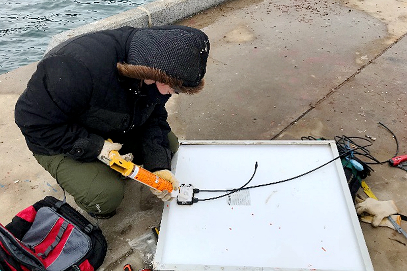 中國科學(xué)院近海海洋觀測研究網(wǎng)絡(luò)在北黃海獐子島海域布放的浮標(biāo)系統(tǒng)自2009年投入使用以來,在位運行時長已將近九年,系統(tǒng)整體老化嚴(yán)重,加上今冬多次寒潮的影響,共有三套浮標(biāo)系統(tǒng)出現(xiàn)了系統(tǒng)工作不穩(wěn)定、數(shù)據(jù)中斷以及水下觀測數(shù)據(jù)異常等故障。針對故障情況,公共技術(shù)中心經(jīng)過仔細討論,提前制定詳細的維護方案,并作好充分準(zhǔn)備,在海況允許情況下現(xiàn)場對三套浮標(biāo)進行了全面的檢修維護。此次維護工作主要包括浮標(biāo)系統(tǒng)的故障排除、附著海生物清理、接插件重新水密處理、安全隱患消除等內(nèi)容,其中05號浮標(biāo)系統(tǒng)完成了數(shù)據(jù)采集控制系統(tǒng)、供電系統(tǒng)以及傳輸線纜的徹底更換,并由原來的單一通信方式增加為CDMA+GPRS雙通信方式,提高了數(shù)據(jù)傳輸?shù)某晒β?,同時還安裝了獨立北斗定位系統(tǒng),以增強浮標(biāo)的安全性;04號浮標(biāo)系統(tǒng)完成了太陽能板的維修以及太陽能控制器的更換,并改進太陽能充電線路的密封方式,以降低供電系統(tǒng)因進水導(dǎo)致短路的風(fēng)險,同時安裝銥星信標(biāo)進行系統(tǒng)的獨立定位;02號浮標(biāo)系統(tǒng)完成了溫鹽傳感器的更換以及銥星信標(biāo)電池的更換。