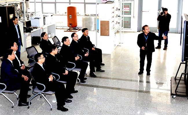 唐一軍首先聽取了劉中民對(duì)大連化物所基本情況的介紹,隨后依次到低碳催化與工程研究部、燃料電池研究部、儲(chǔ)能技術(shù)研究部進(jìn)行參觀,聽取了研究室(部)相關(guān)人員的科技工作匯報(bào),并就科技創(chuàng)新、成果轉(zhuǎn)化等方面的問題與科研人員進(jìn)行了深入的交流探討。