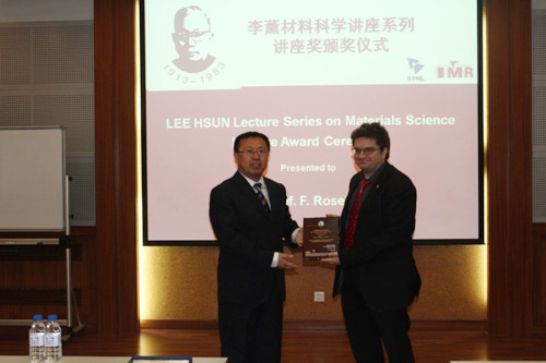 來訪期間,F(xiàn)ederico Rosei教授為金屬所科研人員和研究生作了題目為“Multifunctional Materials for Emerging Technologies”的報告。報告前,張哲峰副所長代表金屬所為F. Rosei教授頒發(fā)了李薰講座獎獎牌。李峰研究員主持了報告會。