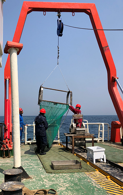 科考隊(duì)員進(jìn)行拖網(wǎng)作業(yè)