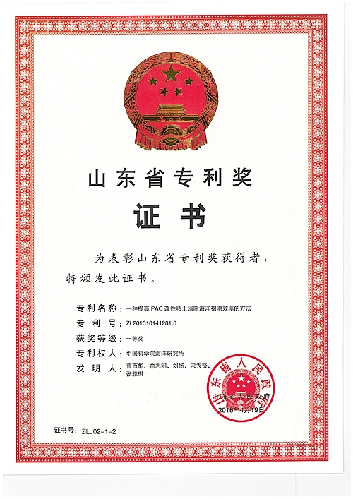 日前,第二屆山東省專利獎(jiǎng)獲獎(jiǎng)名單公布,海洋研究所國(guó)內(nèi)授權(quán)發(fā)明專利“一種提高PAC改性粘土消除海洋褐潮效率的方法”榮獲山東省專利獎(jiǎng)一等獎(jiǎng)。