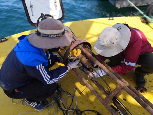 技術(shù)人員對浮標(biāo)進(jìn)行檢修