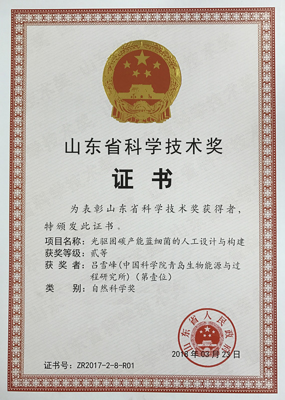 山東省科學技術獎由山東省人民政府設立,每年度評審一次。獎項評審貫徹自主創(chuàng)新、重點跨越、支撐發(fā)展、引領未來的方針,堅持尊重知識、尊重人才,鼓勵自主創(chuàng)新以及產學研結合、科技成果推廣應用,注重科學技術水平和取得自主知識產權狀況,注重科學技術對解決我省經濟社會發(fā)展重大問題做出的貢獻和取得的效益。本次山東省科學技術獎評選,共評出山東省自然科學獎一等獎2項,二等獎15項,其中“光驅固碳產能藍細菌的人工設計與構建”項目是2017年度山東省自然科學獎中唯一的生物學科獲獎項目。(文/圖 王緯華)