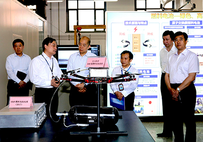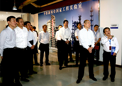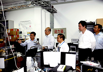 譚作鈞一行首先參觀了燃料電池研究部、儲能技術(shù)研究部、低碳催化與工程研究部、分子反應(yīng)動力學國家重點實驗室等研究單元,并與科研人員進行了交談。