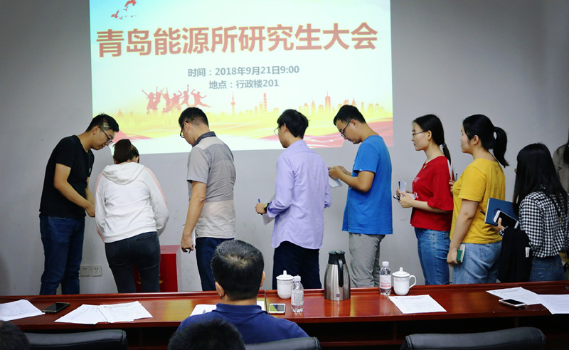 9月21日,青島能源所2018年度研究生大會在行政樓201會議室順利召開。研究所副所長呂雪峰、來自各研究組的一百余名研究生代表參加會議。