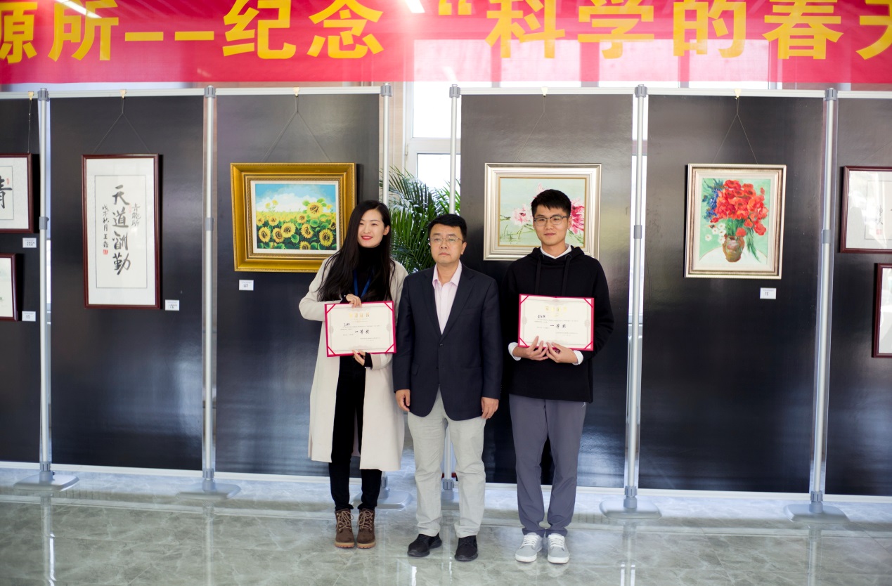 書畫攝影展作品于9月27日開始面向全所進行征集,優(yōu)秀作品由展覽期間廣大職工、學生的投票評選產(chǎn)生。上午10時許,由黨委書記彭輝、所長助理陳驍、辦公室主任張瑞東分別為一二三等獎獲獎?wù)哳C獎。