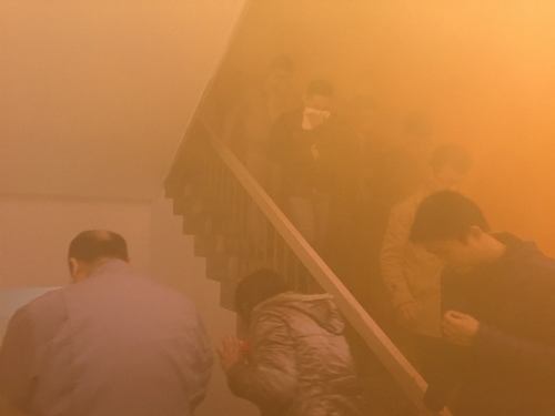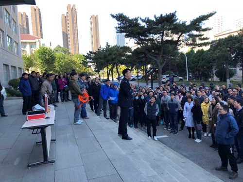 為了使疏散演練達到預(yù)期效果,提升演練的真實感,此次演練在樓內(nèi)投放了煙霧彈,并聘請了專業(yè)消防培訓(xùn)教官全程進行指揮。在演練過程中,各樓職工和學(xué)生都能夠認真地按照演練預(yù)案,準備好濕毛巾捂住口鼻,低姿、安全、有秩序地從各安全通道和出口迅速疏散到樓外。參加演練的全部人員安全撤離到安全地帶后,演練總指揮遼寧益安消防知識宣傳中心的孫明龍主任對本次的消防演練情況進行了總結(jié)講話,并為大家講解示范了安全逃生常識及注意事項,使大家掌握了火災(zāi)中正確的逃生方法和自救常識。這次演練活動使全所職工進一步提升了消防安全意識,掌握了消防安全知識,對提高我所職工及學(xué)生的消防逃生自救技能和應(yīng)對突發(fā)火災(zāi)事件的能力起到很好效果。