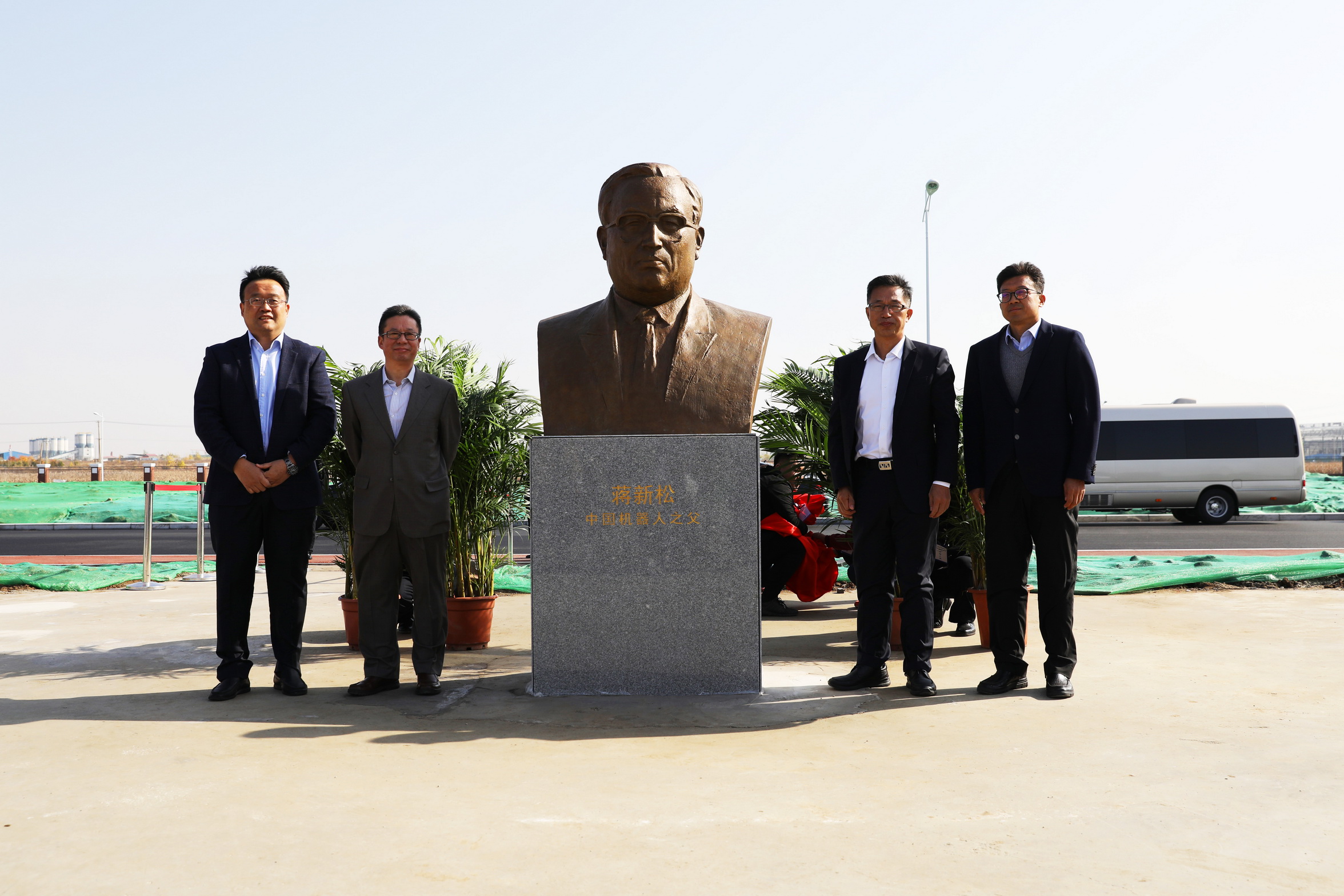2018年恰逢中科院沈陽自動化所建所60周年,為紀(jì)念蔣新松院士,傳承研究所“獻(xiàn)身、求實、協(xié)作、創(chuàng)新”的創(chuàng)新文化精神,在創(chuàng)新研究院新園區(qū)敬立了蔣新松塑像,供科技工作者瞻仰,鼓舞大家為了熱愛且不懈追求的科研事業(yè)而努力奮斗。沈陽自動化所副所長史澤林主持蔣新松院士塑像揭幕儀式,與紀(jì)委書記梁波,副所長、黨委副書記孫雷,副所長李碩共同為塑像揭幕。