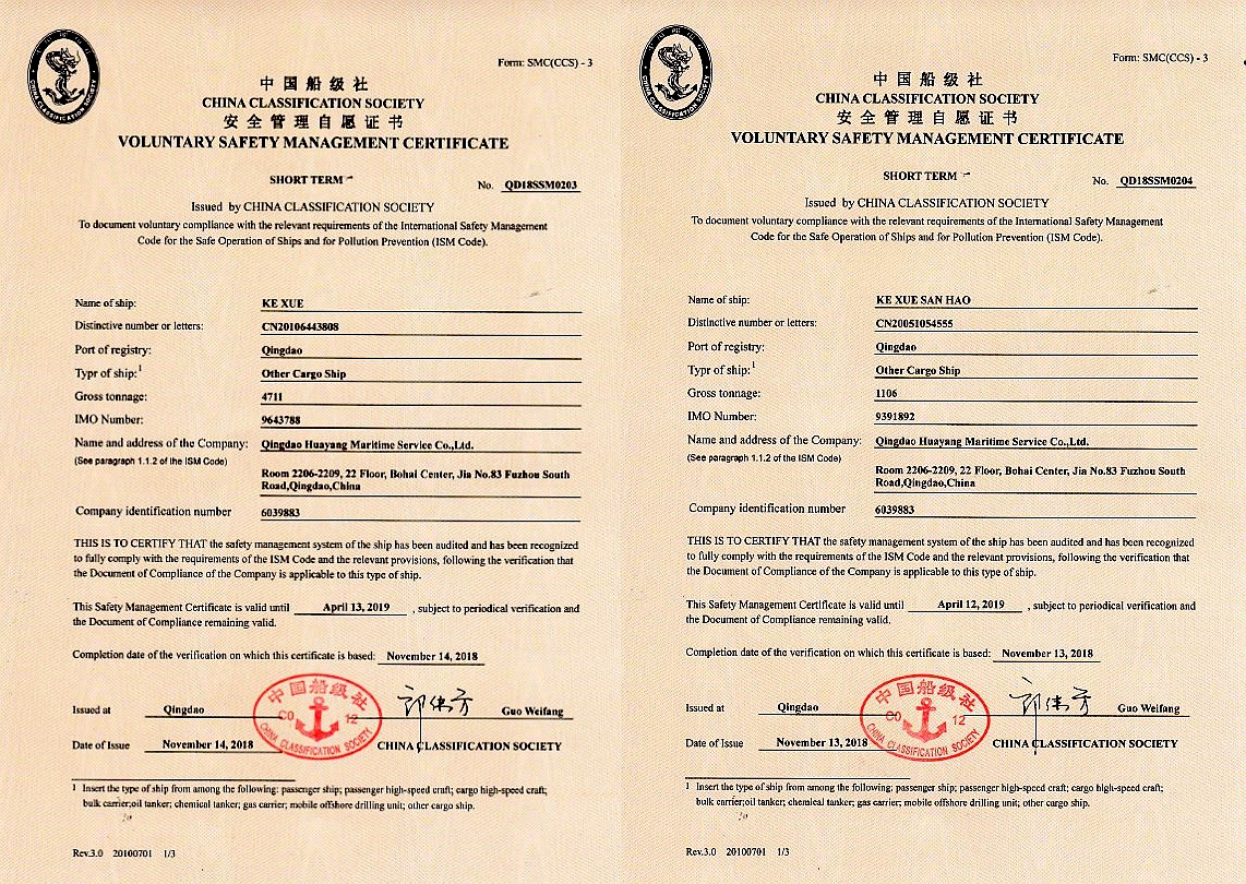 經(jīng)過四個月的船舶安全管理體系運行,11月12日,海洋所“科學(xué)”輪與“科學(xué)三號”輪于青島西海岸母港順利通過中國船級社青島分社對兩船船舶安全管理體系外部審核認證,并于11月14日換發(fā)正式SMC證書。