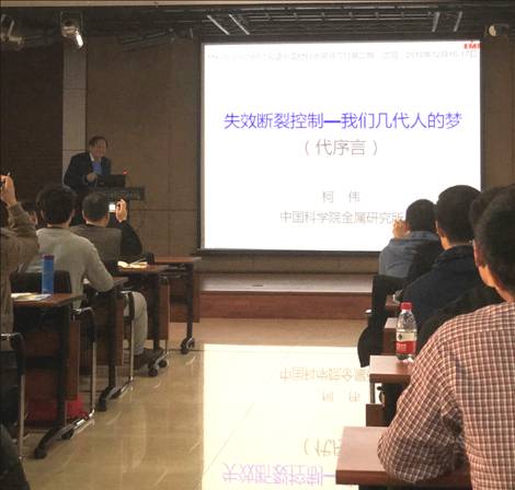 會上,柯偉院士作了題為“失效斷裂控制——我們幾代人的夢”的報告,《中國材料進展》雜志社賈豫冬主任介紹了《中國材料進展》雜志情況,韓恩厚研究員作了“2018新材料國際發(fā)展趨勢高層論壇”材料服役行為會場主要內(nèi)容回顧以及“材料與工程結構腐蝕與防護——進展與挑戰(zhàn)”的報告,張哲峰研究員作了“材料疲勞斷裂與構件失效”的報告,西南交通大學朱旻昊教授作了“工業(yè)領域的微動磨損及其防護”的報告,中科院寧波材料技術與工程研究所王立平研究員作了“從強韌薄膜到強韌鈍涂層:界面調(diào)控與應用”的報告。各位報告人充分介紹了自己的研究成果,并與現(xiàn)場師生就報告內(nèi)容和感興趣的科學問題進行了熱烈的討論交流。學術報告后,韓恩厚研究員進行了總結發(fā)言。會后柯偉院士等人分別為參會的學員頒發(fā)了培訓結業(yè)證書。會后部分學員參觀了金屬所分析測試中心以及國家金屬腐蝕控制工程技術研究中心、中國科學院核用材料與安全評價重點實驗室等實驗室。