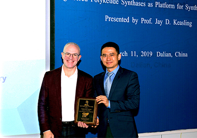 3月11日,美國國家工程院院士、美國藝術與科學學院院士、伯克利加州大學教授Jay D. Keasling應中國科學院大連化學物理研究所研究員趙宗保邀請,來大連化物所作了題為“Engineered Polyketide Synthases as Platform for Synthetic Chemistry”的第三十一期張大煜講座報告。大連化物所副所長蔡睿、職能部門相關負責人,以及所內(nèi)外相關領域科研人員和研究生150余人到場聽取了報告。報告由趙宗保主持,蔡睿代表大連化物所向Keasling頒發(fā)了張大煜講座證書和大連化物所榮譽教授證書。