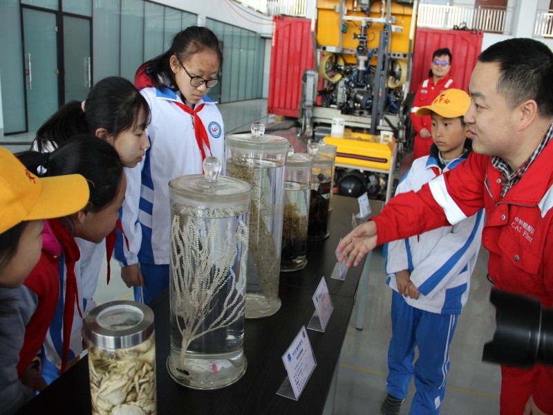 除了登船參觀“科學(xué)”號(hào)外,公眾還走進(jìn)海洋綜合測(cè)試樓,參觀“發(fā)現(xiàn)”號(hào)ROV的維護(hù)保養(yǎng)基地,通過(guò)中國(guó)科學(xué)院海洋科學(xué)考察船隊(duì)10艘科考船的模型展示以及科考設(shè)備實(shí)物、深海生物樣品、科考視頻、圖文展板等形式深入了解更多的海洋科學(xué)考察知識(shí)及最新深遠(yuǎn)海探測(cè)研究成果,全方位地向公眾普及海洋科學(xué)考察領(lǐng)域的相關(guān)知識(shí)。