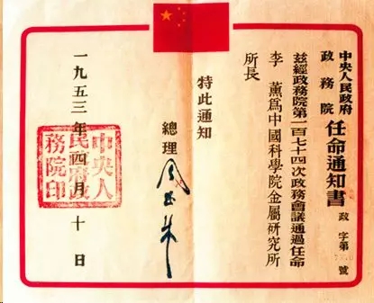 1950年10月,在英國鋼都雪菲爾德大學(xué)工作的李薰先生回國,開展中科院金屬所建設(shè)的相關(guān)工作?;貒?,李薰先生主持成立了金屬所籌備處。考慮到沈陽地處鞍鋼、本鋼、撫鋼和大連鋼廠幾大鋼廠中心,更有利于服務(wù)新中國鋼鐵建設(shè),李薰放棄了金屬所原來的選址地——首都北京,而選定了東北工業(yè)中心城市——沈陽。1953年4月10日,周恩來總理頒發(fā)李薰先生為中國科學(xué)院金屬研究所所長的任命書,6月11日中國科學(xué)院正式通知李薰先生就任所長。金屬所是新中國成立后中科院新建的首批研究所之一。當(dāng)時(shí),我們稱李薰先生等十余名留洋學(xué)者和前輩為“高老大”,他們?yōu)榻饘偎於藘?yōu)良的學(xué)風(fēng)。