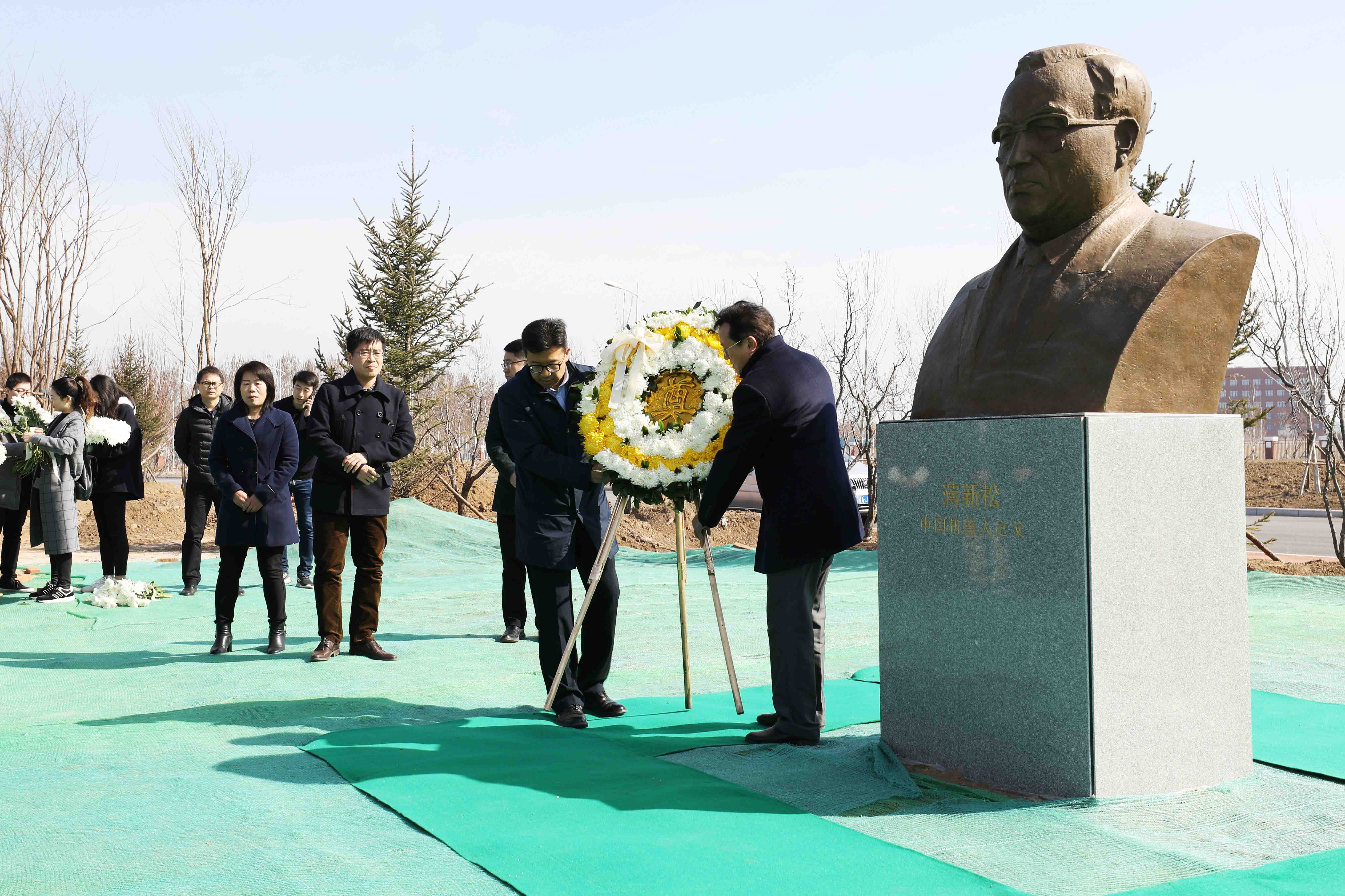 桑子剛和孫雷為蔣新松塑像敬獻(xiàn)花籃。隨后,與會人員依次為塑像敬獻(xiàn)鮮花并集體默哀寄托哀思。儀式結(jié)束后,全體人員來到學(xué)術(shù)報告廳,進(jìn)行了傳承蔣新松精神的主題教育活動。