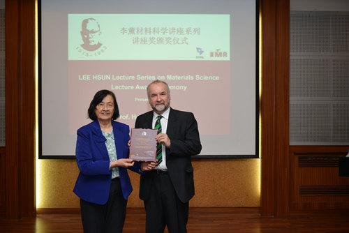 李依依院士為Helmut Clemens教授頒發(fā)李薰講座獎獎牌