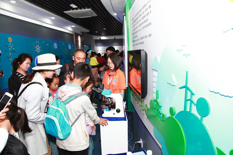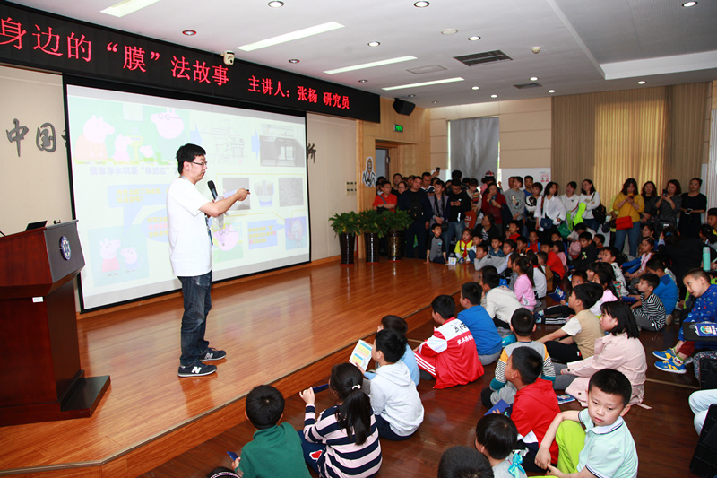 在“科學(xué)大家談”環(huán)節(jié),環(huán)境資源化與水回用研究組研究員張楊、微生物代謝工程研究組副研究員王瑋華分別以《你身邊的“膜”法故事》、《小小微藻,跨越海洋飛向太空》為題做了兩場(chǎng)科普?qǐng)?bào)告。張楊用圖文并茂的形式介紹了什么是“膜”及“膜”的用途—“膜”法潔凈水與空氣、“膜”法穿戴、“膜”法治病、“膜”法發(fā)電,讓公眾了解了“膜”的神奇故事。王瑋華從微藻的起源、種類、優(yōu)點(diǎn)展開,以通俗易懂的語(yǔ)言闡述了微藻如何實(shí)現(xiàn)從海洋“飛向”太空?!翱茖W(xué)大家談”受到了社會(huì)公眾的熱烈歡迎,并就感興趣的問題與科研人員進(jìn)行了探討和交流,積極互動(dòng),現(xiàn)場(chǎng)氣氛活躍。“少年愛科學(xué)”環(huán)節(jié)是本次活動(dòng)的一大特色。為體現(xiàn)科普工作對(duì)青少年創(chuàng)新能力培養(yǎng)的影響,研究所首次邀請(qǐng)了科研人員子女代表—市北二實(shí)驗(yàn)初中學(xué)生崔浩然以及共建創(chuàng)新實(shí)踐基地合作單位—青島二中高一學(xué)生王源海來所現(xiàn)場(chǎng)做科學(xué)展示。崔浩然及同伴帶來了“奇妙的化學(xué)蠕蟲”、“有趣的泡沫”、 “利用化學(xué)反應(yīng)吹氣球”科學(xué)小實(shí)驗(yàn),王源海及同伴向公眾展示了自行研制的全新抽水裝置,該環(huán)節(jié)引發(fā)了公眾的極大興趣,現(xiàn)場(chǎng)熱鬧非凡。