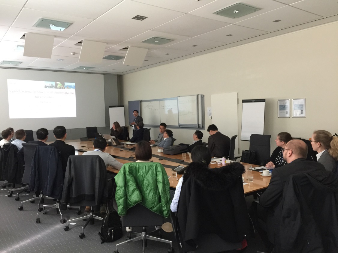 本次研討會分為技術(shù)報告和機構(gòu)訪問兩部分內(nèi)容。9位中方代表先后介紹了各自在工業(yè)生物技術(shù)領(lǐng)域的特色工作,與參會的德方代表就感興趣的領(lǐng)域進行了交流和探討。會議期間,中方代表與于利希研究中心生物與地理科學(xué)研究所、亞琛工業(yè)大學(xué)生物技術(shù)系、世界領(lǐng)先的高科技聚合物材料供應(yīng)商科思創(chuàng)、全球領(lǐng)先的特種化工企業(yè)之一贏創(chuàng)的技術(shù)與創(chuàng)新部門Creavis開展訪問交流。科思創(chuàng)研發(fā)負(fù)責(zé)人Verena Goldbach博士表示,此行代表團的訪問使科思創(chuàng)公司了解到中國在生物基材料領(lǐng)域的研發(fā)力量,也從中找到非常感興趣的合作方向。