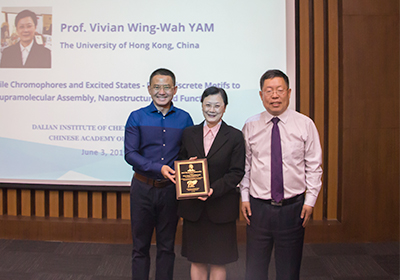 6月3日,香港大學(xué)任詠華院士應(yīng)邀在中國科學(xué)院大連化學(xué)物理研究所作了題為“Versatile Chromophores and Excited States - From Discrete Motifs to Supramolecular Assembly, Nanostructures and Functions”的70周年所慶學(xué)術(shù)報告暨第33期張大煜講座報告。報告由李燦院士主持,大連化物所科研人員和研究生近80人參加了報告會。大連化物所副所長蔡睿向任詠華頒發(fā)了張大煜講座證書和大連化物所榮譽教授證書。