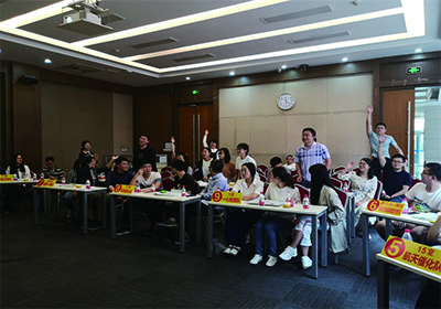 本次比賽的題目來(lái)自文化講壇第163期“孔子與《論語(yǔ)》”的講座內(nèi)容和前期網(wǎng)絡(luò)答題的題庫(kù),現(xiàn)場(chǎng)決賽設(shè)必答題、搶答題、觀眾參與題和風(fēng)險(xiǎn)搶答題。新穎的比賽形式和活躍的賽場(chǎng)氣氛充分激發(fā)了參賽選手和現(xiàn)場(chǎng)觀眾的競(jìng)技熱情。必答題環(huán)節(jié),各代表隊(duì)?wèi){借扎實(shí)的準(zhǔn)備連戰(zhàn)連捷,失分較少;搶答題環(huán)節(jié),選手們當(dāng)仁不讓,以迅雷不及掩耳之勢(shì)按下?lián)尨鹌鳎荣惓煽?jī)逐漸拉開;觀眾參與題環(huán)節(jié),現(xiàn)場(chǎng)親友團(tuán)發(fā)揮威力,力挽狂瀾,助自己的隊(duì)伍一臂之力,幫助隊(duì)友化險(xiǎn)為夷;最后,有兩支代表隊(duì)得分相同,他們通過(guò)風(fēng)險(xiǎn)搶答題一決勝負(fù)。