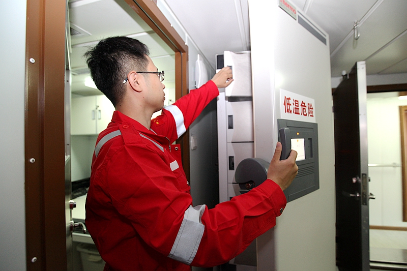 科考人員出航前檢查超低溫冰箱運(yùn)行情況