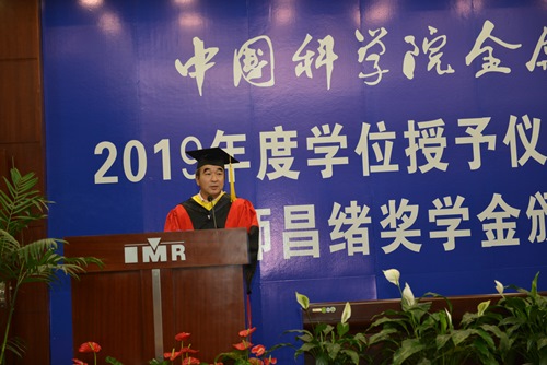 在激昂的國歌聲中,畢業(yè)典禮拉開了帷幕。副所長劉崗研究員宣讀了2019年度授予學(xué)位的決議和畢業(yè)生名單。本年度金屬所共有157名同學(xué)畢業(yè),其中博士生110名、碩士生47名。